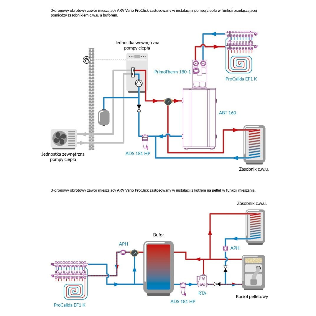 Zawory ARV współpracują z siłownikami ARM o kącie obrotu 90°, co umożliwia automatyzację ich pracy. Mogą być stosowane w instalacjach z czystą wodą lub wodą zawierającą maksymalnie 50% glikolu.