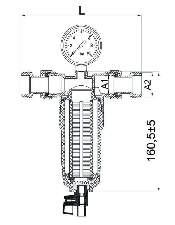 FILTR DO WODY MECHANICZNY SAMOCZYSZCZĄCY Z MANOMETREM 1" DN25 Z PŁUKANIEM WSTECZNYM I MANOMETREM SOLIDNY MOCNY DIAMOND ART.350-25