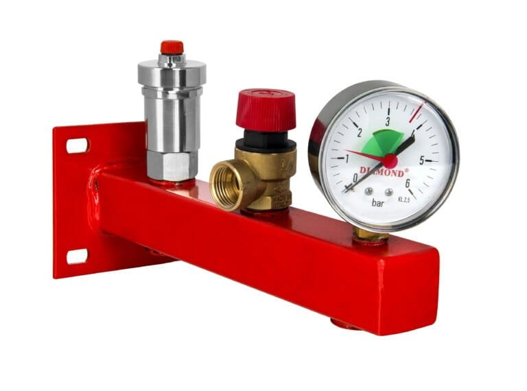 - kontroluje poziom ciśnienia w instalacji grzewczej,