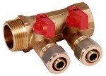 Rozdzielacz pojedynczy PEX 1 cal z zaworami czerwonymi do wody ciepłej