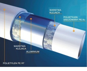 * pełne zespolenie warstwy aluminium z zewnętrzną i wewnętrzną warstwą PE-X.