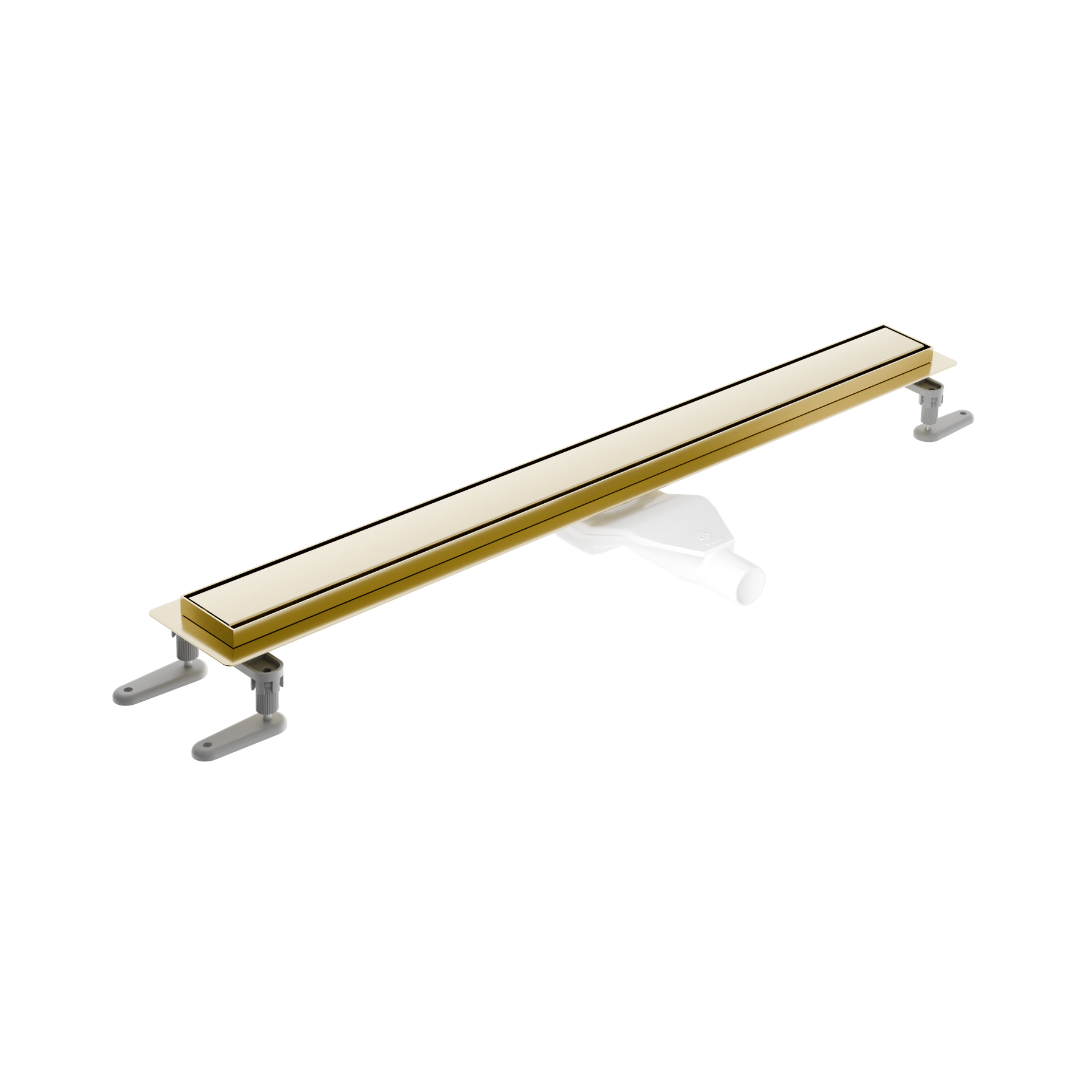 Odpływ liniowy Stilio łączy w sobie minimalizm i praktyczność użytkową. Wykonany został z wysokiej jakości stali nierdzewnej, pokrytej powłoką PVD w kolorze złotym. Odpływ posiada wygodną regulację nóżek w pionie i w poziomie w zakresie do 30 mm. Szeroki wybór dostępnych rozmiarów odpływów i wersji rusztu daje możliwość dostosowania do wielkości kabiny oraz wymiarów płytek, co znacznie ułatwia planowanie układu już na etapie projektowania. Produkt polecany jest do instalacji wraz z kabinami Excellent typu walk-in: Ortigo lub Vidoq.