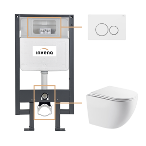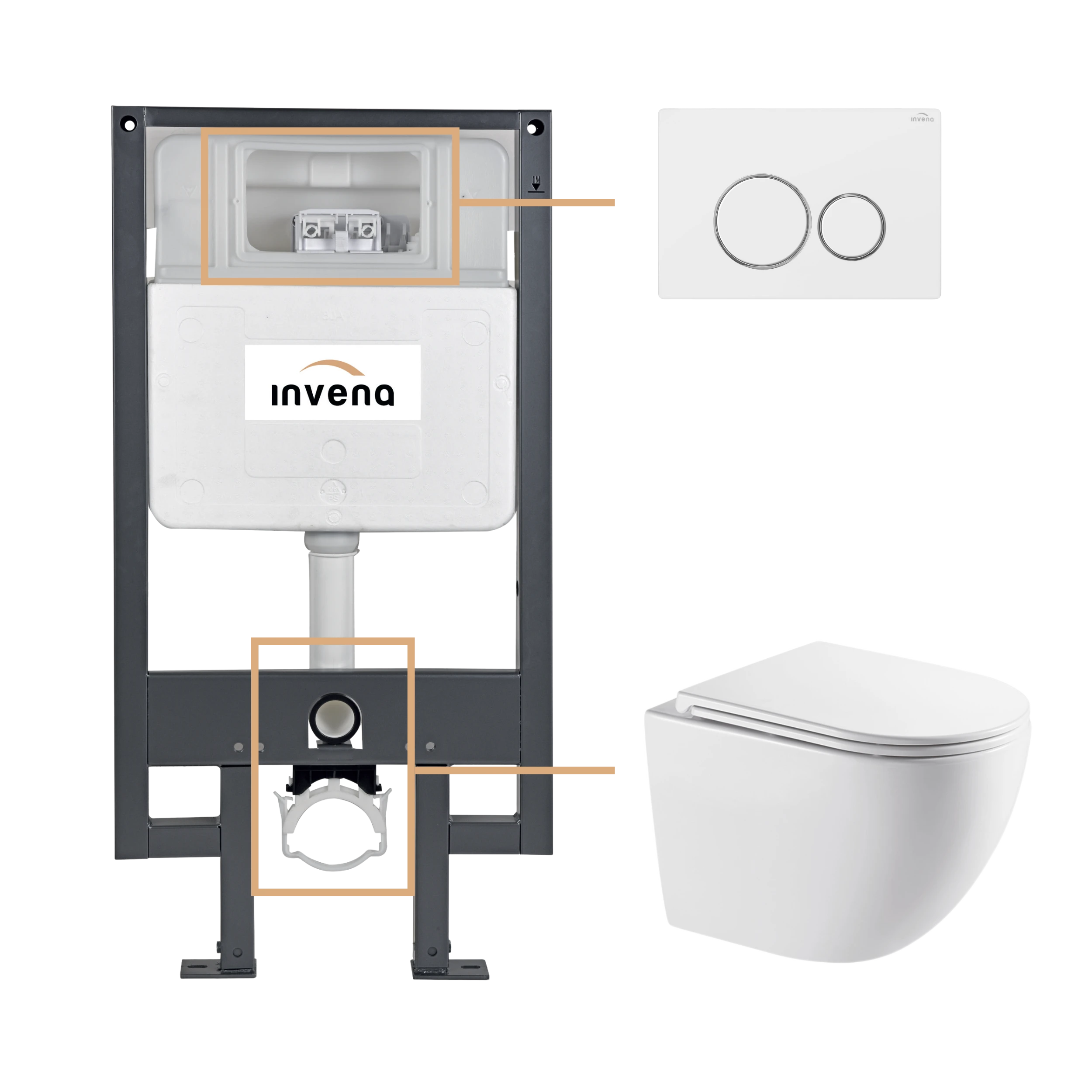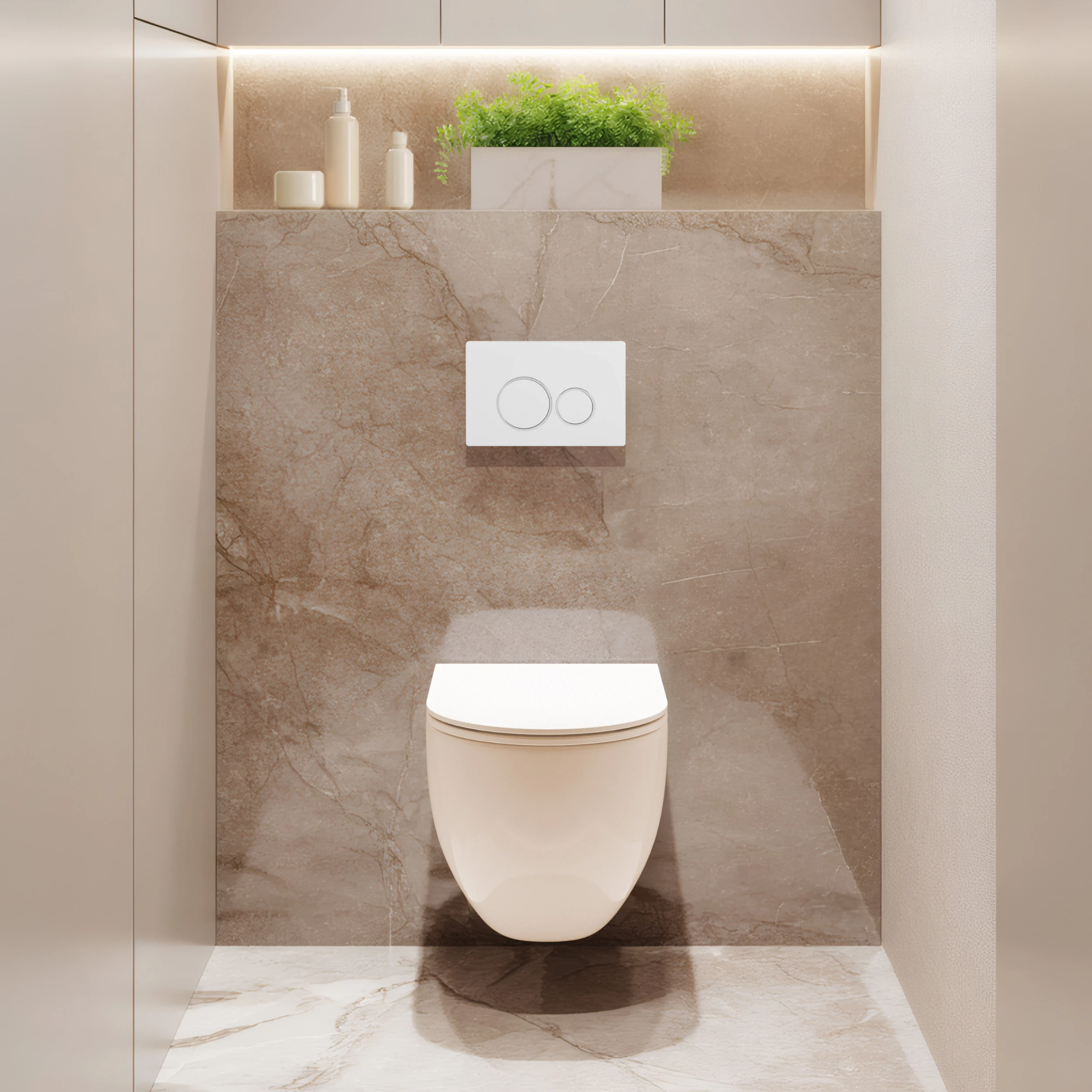 Stelaż podtynkowy o nośności 400 kg, regulowane nogi oraz jednoczęściowy zbiornik z gwarancją szczelności to stabilność i trwałość na lata. Biały przycisk 604 subtelnie podkreśla minimalistyczny charakter zestawu.