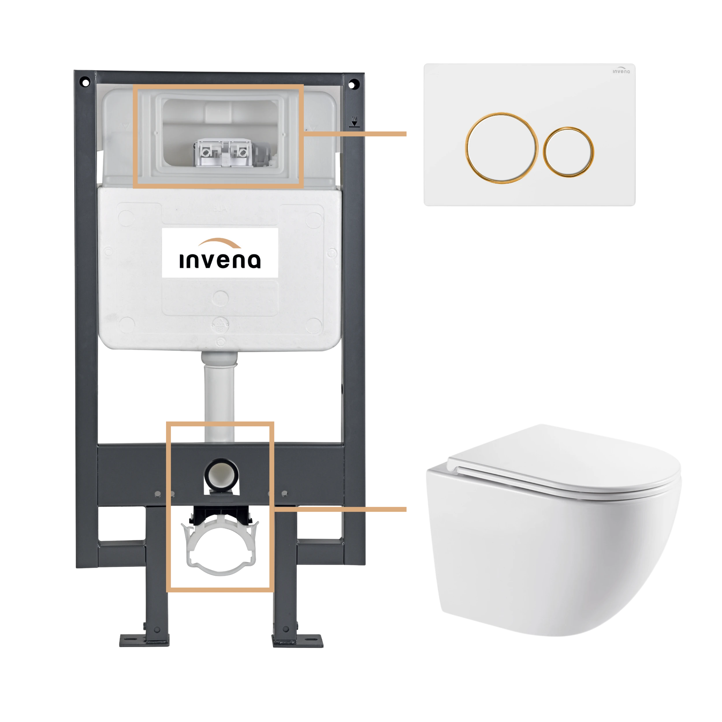 Stelaż podtynkowy o wytrzymałości 400 kg wyposażony został w regulowane nogi, szczelny zbiornik i komplet przyłączy. Czarny przycisk 604 to mocny akcent, który doda wnętrzu charakteru i nowoczesnej elegancji.